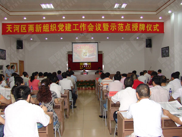 7月2日下午,天河区“两新组织”党建工作现场会暨党建工作示范点授牌仪式在广州市马博在线注册设备制造有限公司隆重举行。天河区委常委、组织部部长潘文捷、广州市委组织部组织处处长邱培藩、天河区委组织部副部长陈璋、公司董事长兼总经理王声位、珠吉街党工委书记杜党勇、办事处主任周国栋等出席了会议。