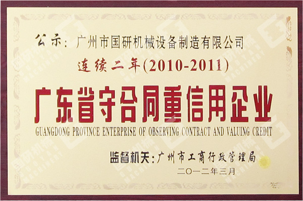 2012年3月,广州市马博在线注册设备制造有限公司被评为2011年度“广东省守合同重信用企业”。这是我司继连续三年被评为“广州市守合同重信用企业”之后,连续两年获此殊荣。